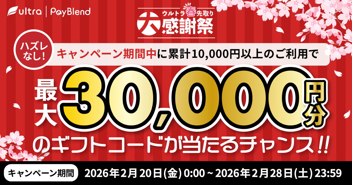 PayBlend キャンペーン規約:https://payblend.ultra-pay.co.jp/service/campaign/1495/